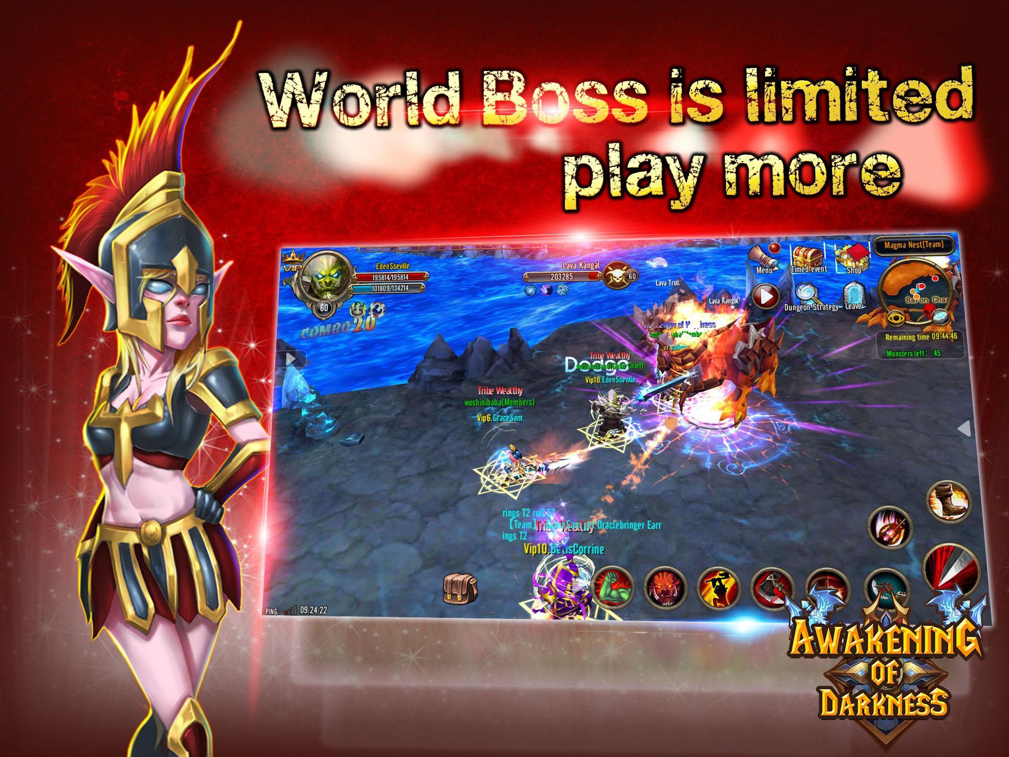 Awakening of Darkness ist ein 3D -PVP -Handyspiel, mit dem Spieler einen brandneuen Spielmodus erleben können. Western Fantasy ist als Hintergrund und weltweit führenden Kunstdesigns, neuesten Unity 3D-Engine, großartige Effekte, einzigartiges Spielerlebnis und Leistungssystem-Set. Wir sind gut vorbereitet, um Ihnen das beste MMORPG des Jahres zu präsentieren!